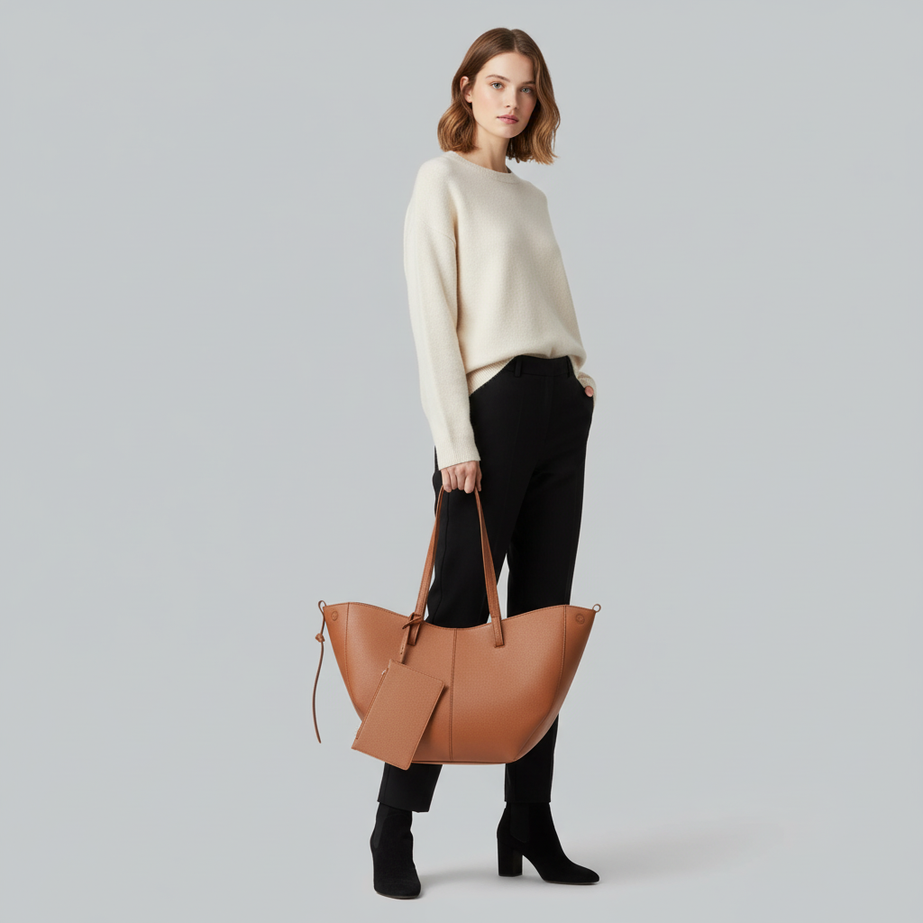 This elegant leather shoulder tote bag for women is a stylish and functional accessory that enhances any outfit. Made from premium leather, it offers both durability and a sleek look. With a spacious interior, it is perfect for carrying all your essentials, making it ideal for work, shopping, or travel.